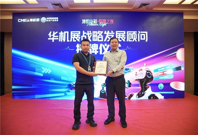 在联盟之夜晚宴上,华机展总经理唐南先生向京津冀智能制造装备产业联盟秘书长张欢喜先生进行了“CMES华机展战略发展顾问”授牌。